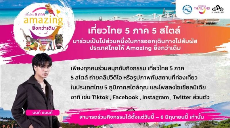 ททท.ท้าสัมผัส Amazing ยิ่งกว่าเดิม กิจกรรมเที่ยวไทย 5 ภาค 5 สไตล์ ลุ้นชมมินิคอนเสิร์ต “นนท์ ธนนท์”