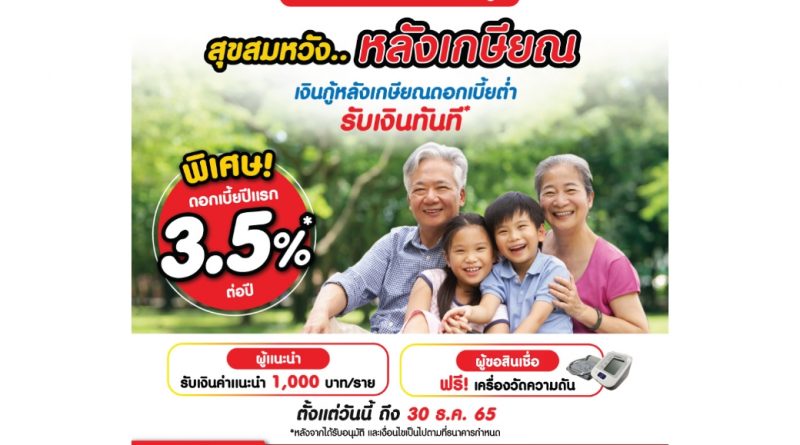 ดอกเบี้ยต่ำ-รับเงินทันที พิเศษ! อัตราดอกเบี้ยปีแรก 3.5% ต่อปี ตั้งแต่วันนี้ถึง 30 ธันวาคม 2565
