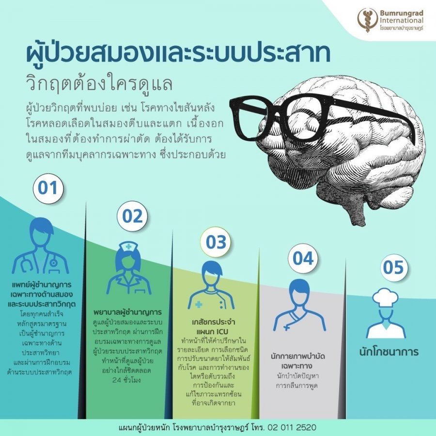 Mrs. Artirat Charukitpipat, CEO of Bumrungrad International Hospital, states, “the nervous system is complex because it manages and controls the other bodily organs and functions, like movement, feelings, speech, breathing, connecting the brain and the organs through the spinal cord. Hence, any neurologic condition can be deadly or lead to permanent disability. However, much of the danger of neurologic disease can be avoided or mitigated through early detection and proper treatment by experienced neurological team.”
