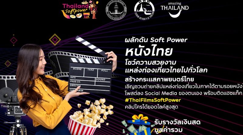ททท. ผลักดัน Soft Power ไทยให้ดังไกลระดับโลก พร้อมจัดกิจกรรม “Thai Films Soft Power” สร้างกระแสภาพยนตร์ไทย เชิญชวนให้ถ่ายวิดีโอตามรอยภาพยนตร์ชื่อดัง ลุ้นรับรางวัลเงินสดรวมมูลค่ากว่า 50,000 บาท!