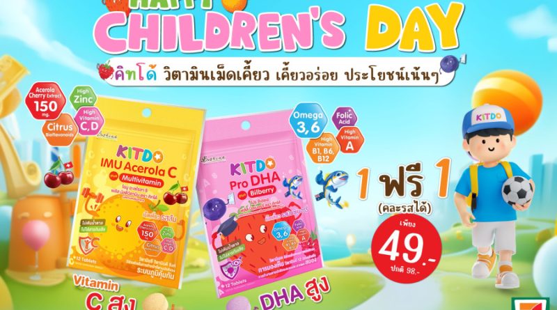 พิเศษกับโปรโมชั่นสุดคุ้ม สุขสันต์วันเด็กแห่งชาติ “Happy Children’s Day 2024” ไปกับคิทโด้ วิตามินเม็ดเคี้ยว 2 สูตร 2 รส เพื่อสุขภาพที่แข็งแรง บำรุงสมองและสายตาที่ดีของน้องๆ หนูๆ ด้วยราคาพิเศษ คิทโด้ 1 ซอง บรรจุ 12 เม็ด แถมฟรีอีก 3 เม็ด (แถมในซอง) รวมเป็น 15 เม็ด/ซอง “ซื้อ 1 แถม 1” คละรสชาติได้ เพียง 49 บาท จากปกติ 98 บาท ตั้งแต่วันนี้ – 23 มกราคม 2567 สามารถซื้อได้ที่ร้านเซเว่น อีเลฟเว่น ทุกสาขาทั่วประเทศ