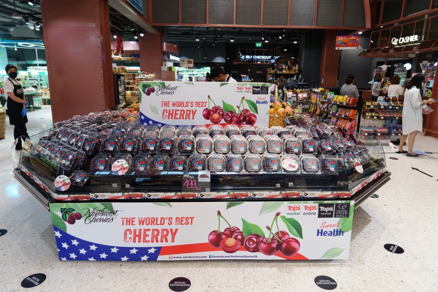 Mr Chairat Petchdakul, Head of Fresh Food of Central Food Retail Co., Ltd., along with Mr. Keith Hu, Director of International Operations for Northwest Cherry Grower’s and Ms. Kelly Stange, Regional Agricultural Counselor, preside over “The Season Launch of Northwest Cherries 2022” event, which this year has as its slogan “Taste the difference”.