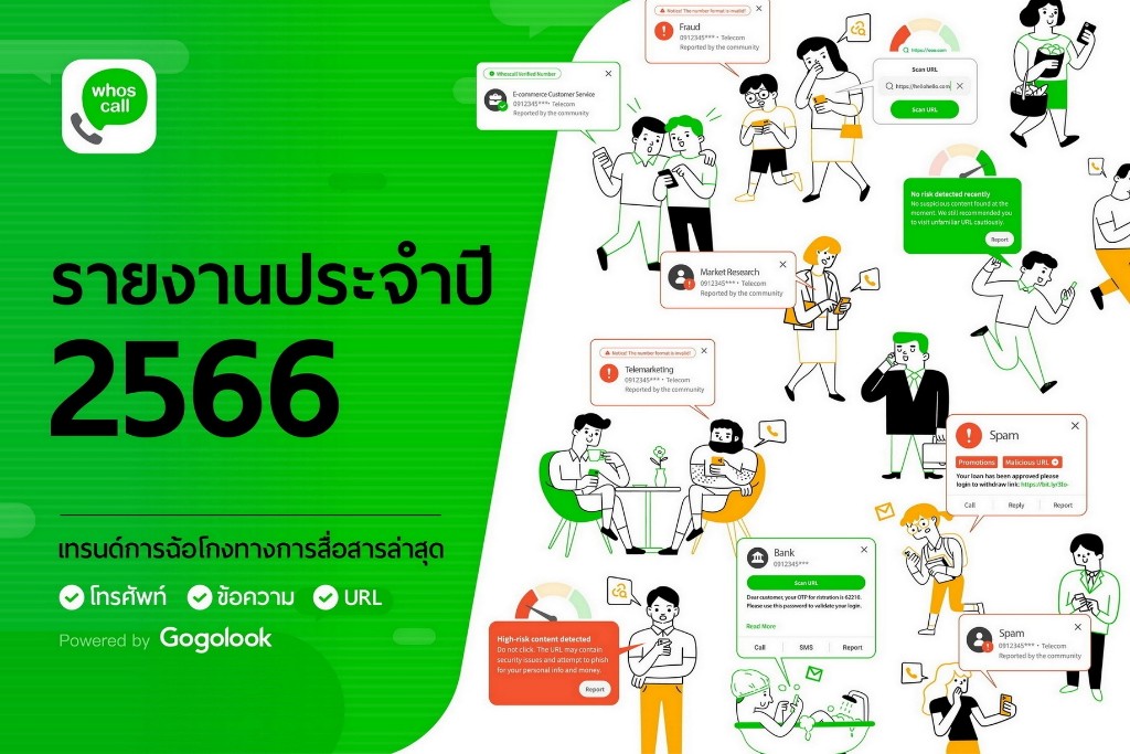 รายงานประจำปี 2566 โดย Whoscall จัดทำขึ้นเพื่อศึกษาพฤติการณ์มิจฉาชีพหลอกลวงผ่านสายโทรเข้า ข้อความ และ ลิงก์จากข้อความ พบว่าคนไทยยังตกอยู่ในความเสี่ยงที่จะได้รับข้อความหลอกลวงมากถึง 58.3 ล้านข้อความ ด้วยกลโกงต่างๆ เกี่ยวกับเงินกู้และเว็บพนันมากที่สุด เตือนระวังมุขใหม่ แอบอ้างผู้ให้บริการส่งสินค้า หน่วยงานรัฐ เช่น การไฟฟ้า เพื่อหลอกเหยื่อ