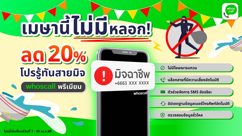 เมษา ไม่มีหลอก! Whoscall แจก โปรโมชันสุดคุ้ม ลด 20% ทุกแพ็กเกจพรีเมียม