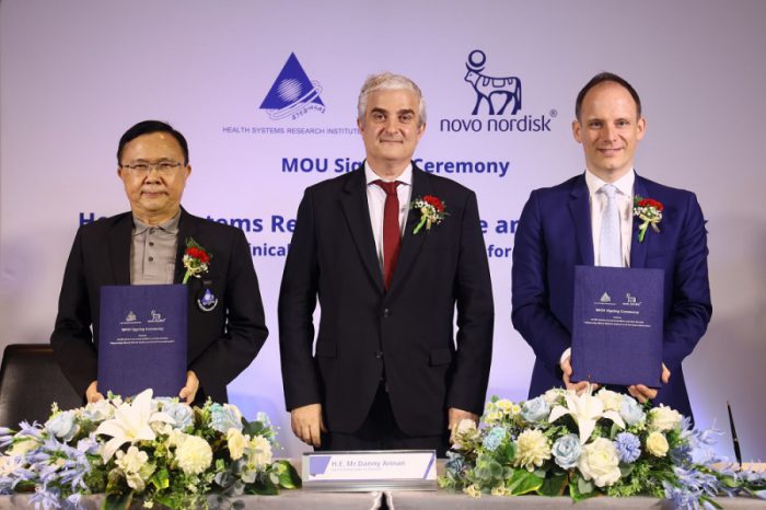 โดยเมื่อวันที่ 29 พฤษภาคม 2568 – สถาบันวิจัยระบบสาธารณสุข (สวรส.) และบริษัท โนโว นอร์ดิสค์ ฟาร์มา (ประเทศไทย) จำกัด หรือ “โนโว นอร์ดิสค์” ได้ร่วมลงนามบันทึกความร่วมมือระหว่างภาครัฐและเอกชนครั้งสำคัญ เพื่อ ยกระดับมาตรฐานวิจัยทางคลินิก และสนับสนุนให้เกิดการขยายโอกาสของการดำเนินงานด้านการวิจัยทางคลินิกใน ประเทศไทยเพิ่มมากขึ้น โดยมี นพ.ศุภกิจ ศิริลักษณ์ ผู้อำนวยการสถาบันวิจัยระบบสาธารณสุข ลงนามร่วมกับ คุณเอ็นริ โก้ คานัล บรูแลนด์ ผู้จัดการทั่วไป บริษัท โนโว นอร์ดิสค์ ฟาร์มา (ประเทศไทย) จำกัด โดยมี ฯพณฯ นายแดนนี แอนนัน เอกอัครราชทูตเดนมาร์กประจำประเทศไทย ร่วมเป็นสักขีพยาน ณ ห้องมาตุลี 2 โรงแรมอัศวิน แกรนด์ คอน เวนชั่น