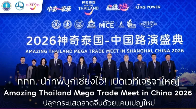 ททท. ผนึกกำลังพันธมิตรการท่องเที่ยว นำผู้ประกอบการไทยกว่า 120 ราย รุกตลาดจีน ในงาน Amazing Thailand Mega Trade Meet in China 2026 ณ นครเซี่ยงไฮ้